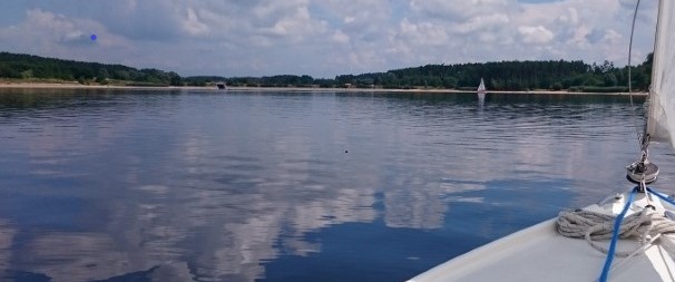 Da sehr wenig Wind am See war, zogen wir nur die Genua auf, die doch noch etwas Wind einfing. Gemütlich erreichten wir die Nordseite des Sees und genossen dabei die Sonne. Mittag machte wir deshalb auch auf dem See.