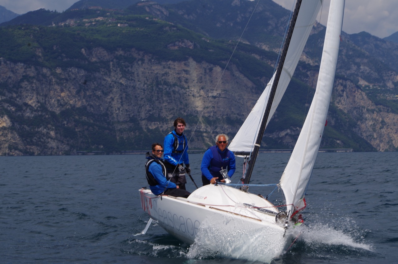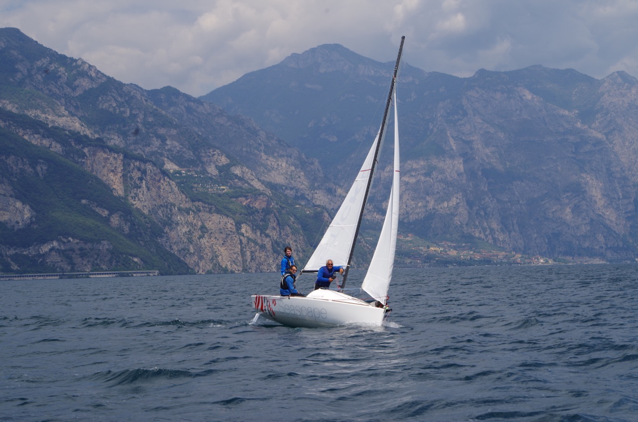 Zur Entspannung für alle haben wir uns dann auch noch einmal eine Beneteau First in Cassone gemietet, dieses mal wollte Maxi aber mit Spinnaker fahren. Wir hatten eine wunderbare gleichmäßige und nicht zu starke Orb und konnten so von Gargnano bis Limone mit dem Spi hinuntersegeln. Es war eine traumhafte Fahrt, entlang an einem wunderschönen Panorama.